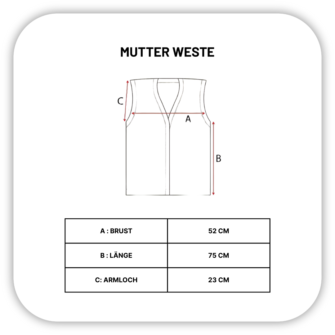 Diese Weste ist in einer Standardgröße entworfen, die für eine mühelose, bequeme Passform sorgt.
